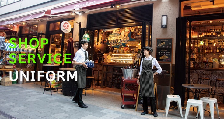 『e-UNIFORM』では、飲食店制服のデザイン提案、法人様向けサンプル貸出、ネーム入れ刺繍、プリント、ズボン裾上げなども承っております。お気軽にご相談ください。飲食店制服カタログ請求もご活用ください。