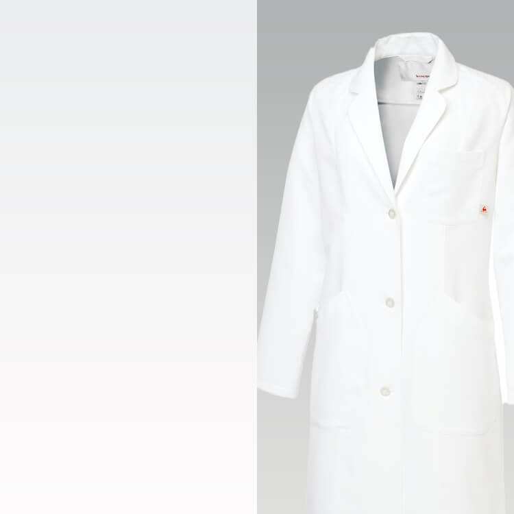 伸縮性のある素材を使用し、動き やすく、軽量なレディース診察衣。