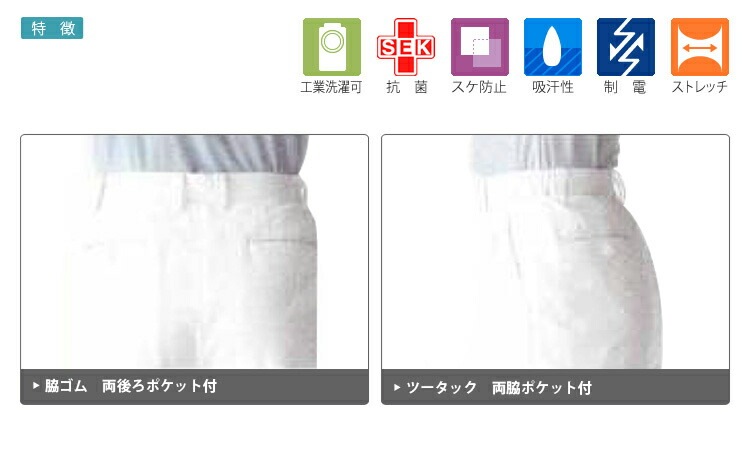 医療用ズボン白衣。制菌、ストレッチ、透け防止、素材多数ご紹介。