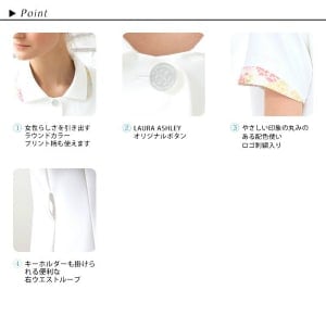 このナースウェアは制菌効果もありますので、清潔さが求められる医療現場でのご使用に最適です。忙しい看護師の方々にもおすすめです。高品質な素材と丁寧な作りで長くご愛用いただけます。ローラアシュレイの信頼と安心のブランドで、着心地も抜群です。オシャレなデザインで周りと差を付けること間違いなし!