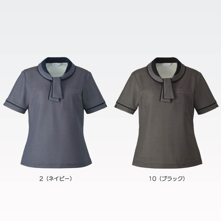 夏にうれしい機能がいろいろと揃っている通気性抜群の事務服ポロシャツ。メンテナンス性に優れたユニフォーム素材を仕様。 通気性抜群のボーダー柄オフィスポロシャツは、スナップボタンで簡単に留められるタイ付で首回りの印象が華やかになります。