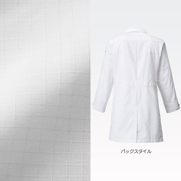 チリやホコリを寄せ付けない 静電気発生防止素材を使用。 また冬場の着脱時に起こる パチパチ感を軽減する診察衣。