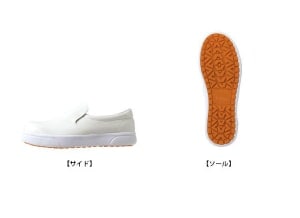 厚生労働省産業安全研究所技術指針に定められた耐滑性能最高区分5をクリアしたコックシューズ。作業時の安全性を高めたノンスリップソールを開発し、さらにインナーにはクッション性が高く柔らかい防臭加工を施したカップインソールを採用して疲れにくく、快適な厨房用シューズになります。