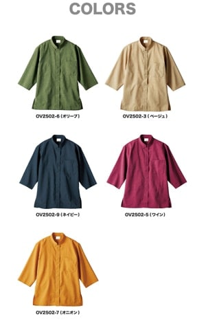 【飲食店ユニフォーム 男女兼用】 七分袖・環境配慮素材・抗菌 ポリ100% S~3L 5色 / 店舗制服