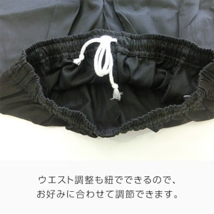 【黒パンツ 綿100%】ウエストゴム・紐付きの店舗制服ズボンをご紹介します。この黒色のパンツは、高品質な綿100%素材で作られており、快適な着心地を提供します。ウエストゴムと紐が付いているため、自分に合ったフィット感を調整することができます。また、股下80/90cmのサイズ展開とSからLLまでの幅広いサイズバリエーションも魅力です。