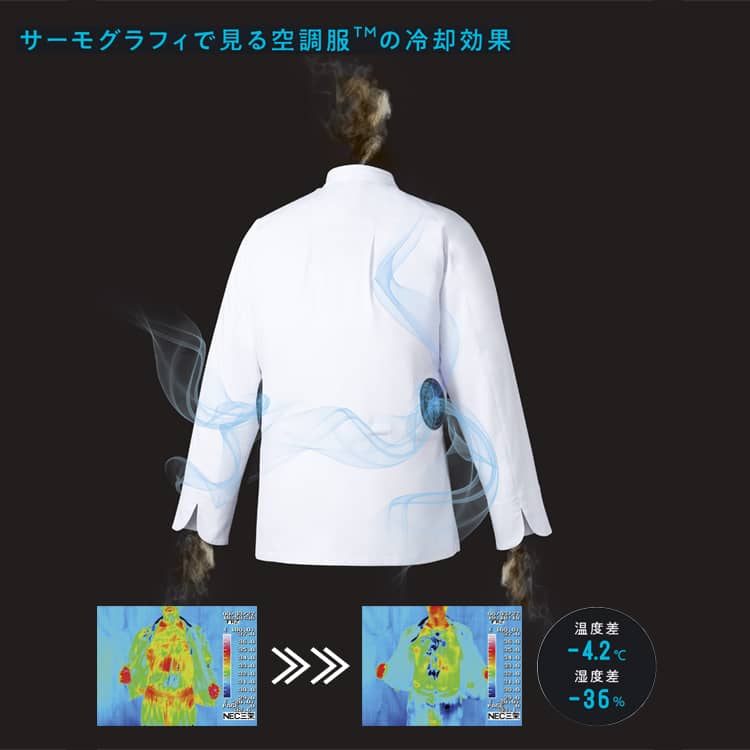 コックコート空調服・長袖・厨房の暑さ対策 ファン付き厨房白衣長袖
