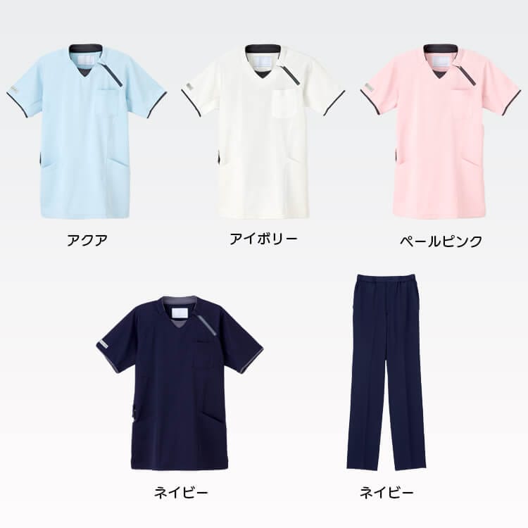 ナースや医療関係者に最適な上下セットです。洗練されたデザインで長時間着用しても快適なので、多忙な職場でも安心してお使いいただけます。