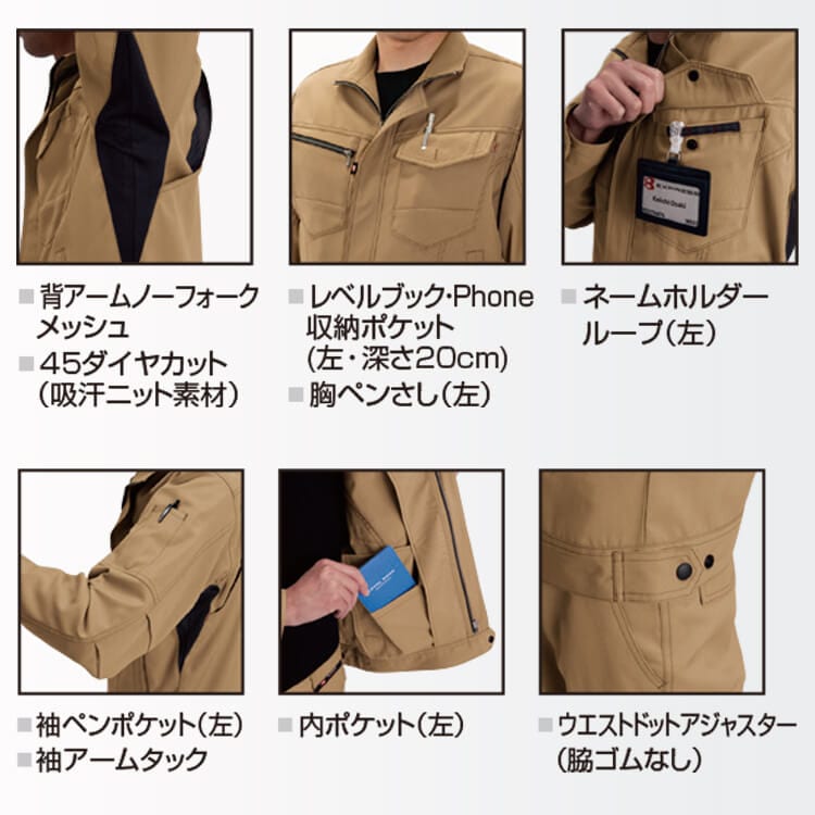 軽量で腕の上げ下げがスムーズなパターン縫製により、着心地も快適です。また帯電防止「JIS8118適合」製品制電作業着なので、様々な職種に対応した企業ユニフォームです。