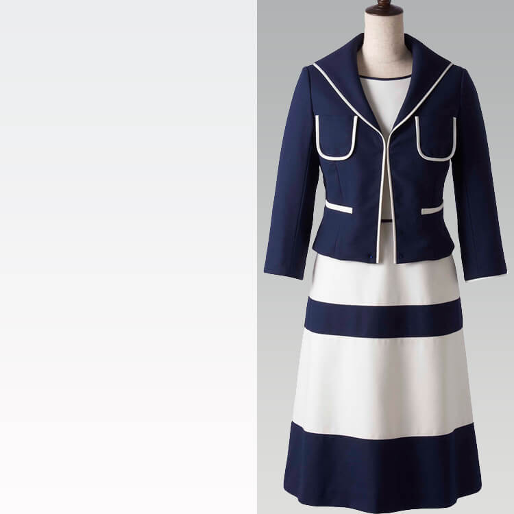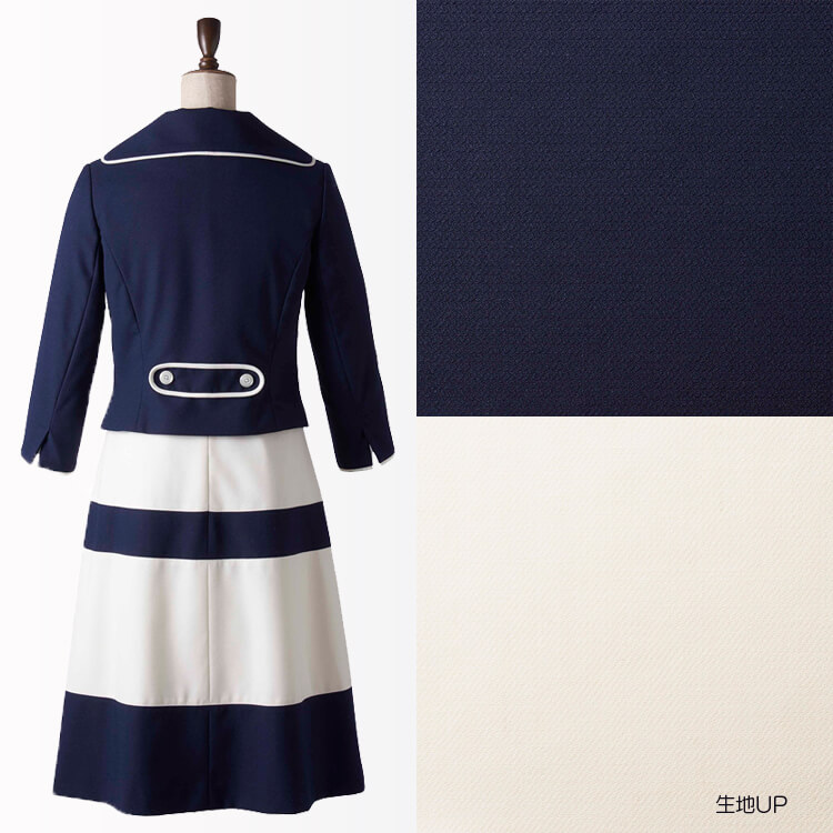 ジャケットの下に同シリーズのワンピースを着用した画像となります