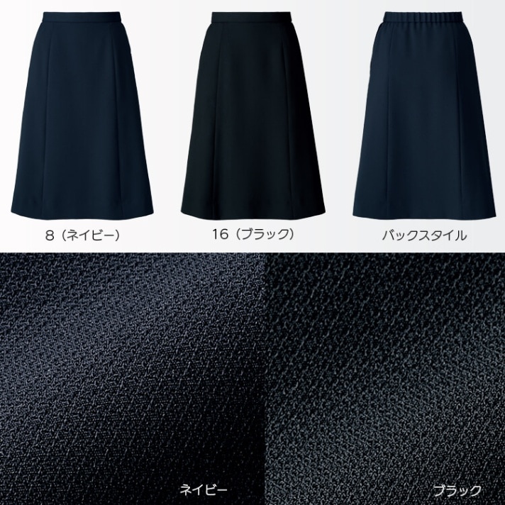 事務服Aラインスカート 丈長め「抗菌&2WAYストレッチ」後ろゴム/オフィスユニフォーム カラー