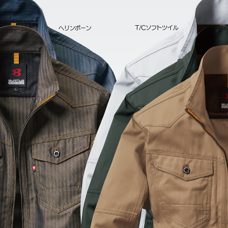 ・ヘリンボーン素材(綿70%・ポリエステル30%) ・T/Cソフトツイル素材(ポリエステル65%・綿35%)
