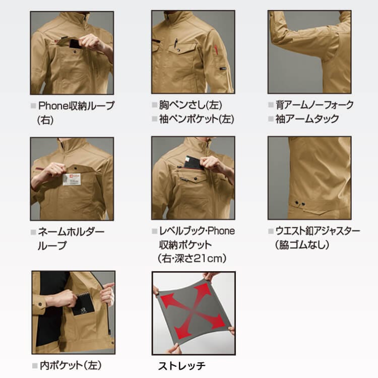 作業服ブルゾン 男女兼用「ストレッチ&帯電防止」BURTLE作業着 / バートル 特徴