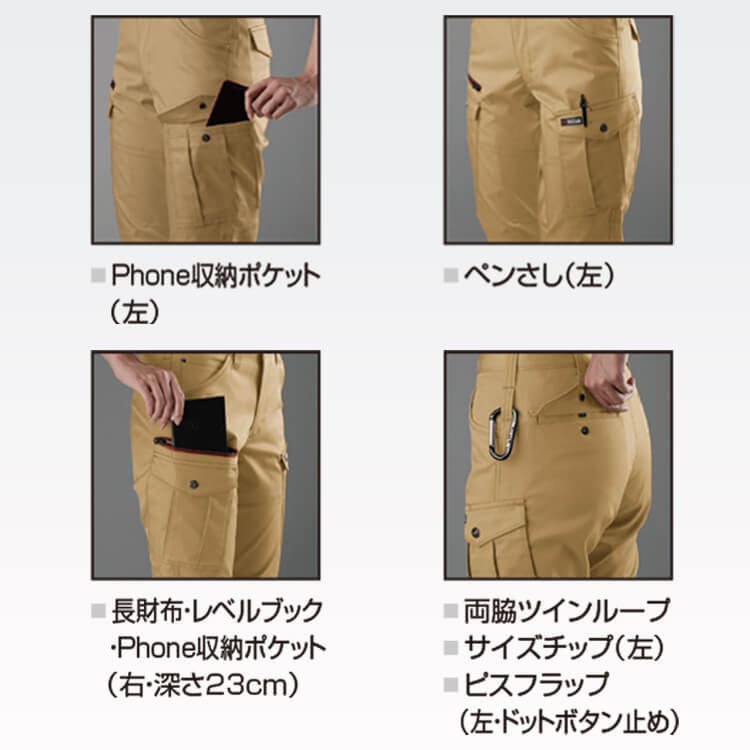 また、【作業服ズボン レディース】は、サイドポケット付きで実用性も抜群。携帯電話や小物を手軽に収納でき、作業効率を高めることができます。会社のユニフォームとしてはもちろん、アウトドアやDIYなど幅広いシーンで活躍すること間違いなし。オシャレで機能的な一枚をお探しの方におすすめのアイテムです。