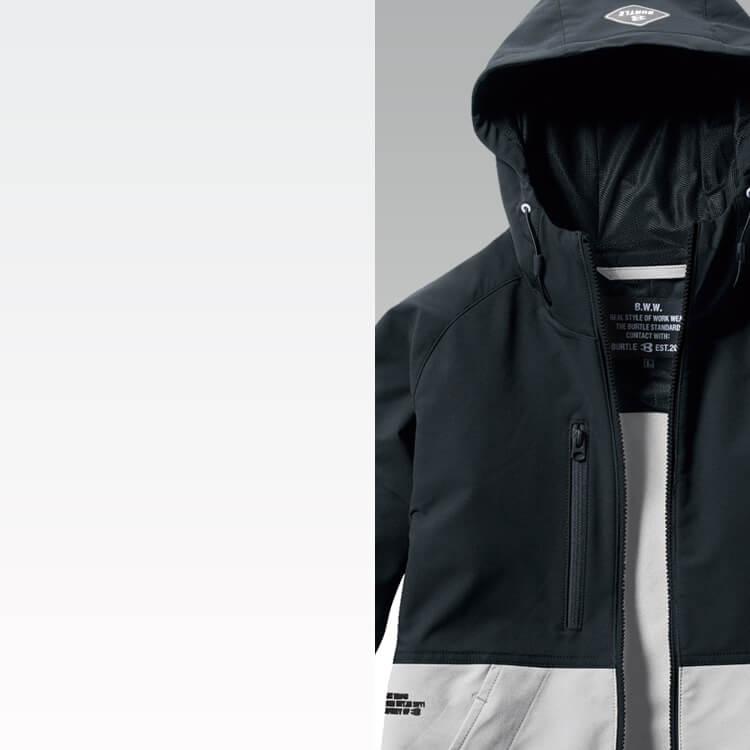 作業用フード付きジャケット 男女兼用「伸長率20%」防汚撥水/バートル 特徴