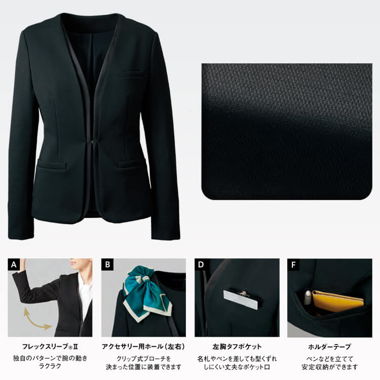 動きやすく伸びやかな着心地で 接客シーンをサポートするなど 受付制服ジャケット。