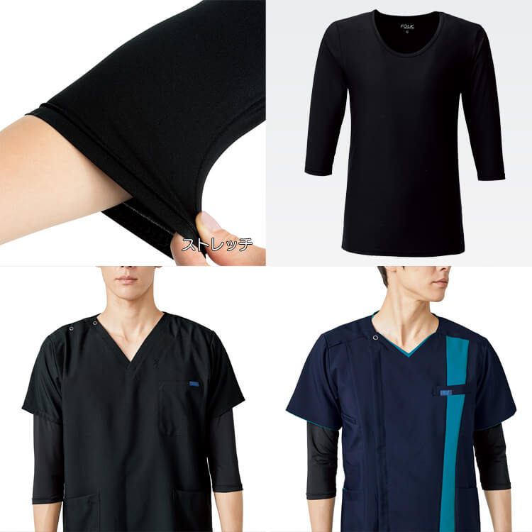 スクラブ白衣インナー八分袖 メンズ「オールシーズン」吸汗速乾 / 詳細