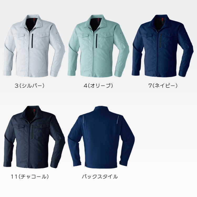【作業服ストレッチ ブルゾン】は、男女兼用で、大きいサイズ8Lもあります。また、制電効果もあり、建設現場の作業着として最適です。4色展開なので、お好みのカラーをお選びいただけます。