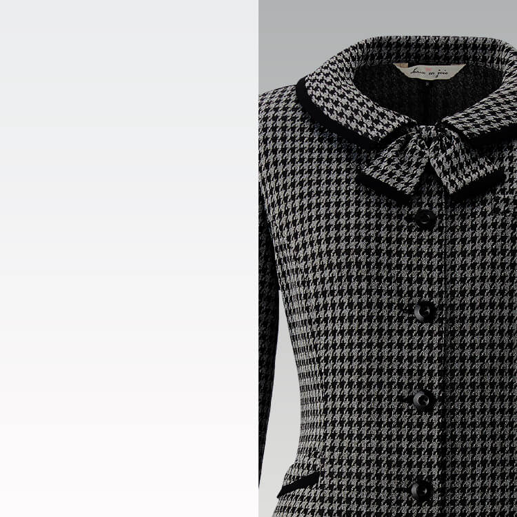 定番の千鳥柄でありながら、ツイード風(杢調)のオシャレなオーバーブラウス制服。またニット素材で伸縮性に優れた動きやすく、シワになりにくいオフィスユニフォーム素材です。
