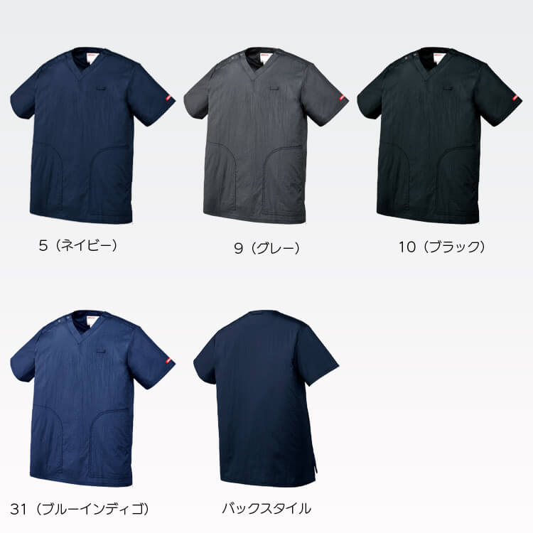 表面には撥水加工を施し、 裏面は空気を通しにくくする 加工を加え、汚れにくい素材 を使用したスクラブ白衣。