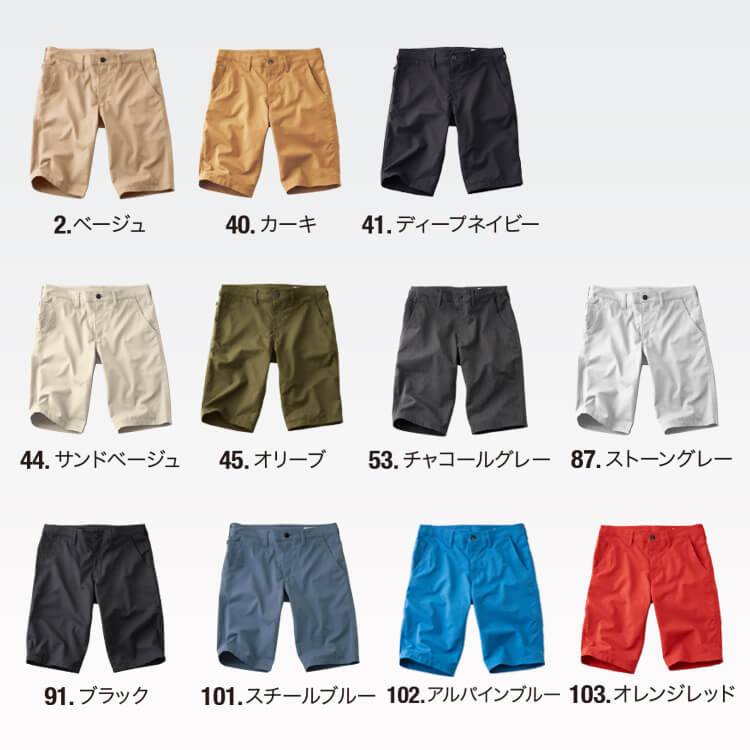 作業着ハーフパンツ メンズ ストレッチ カラー