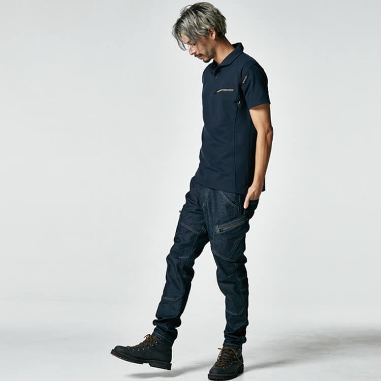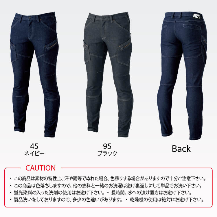 ネイビー/ブラックの2色は ストレッチデニム素材を 使用した作業服ズボン。