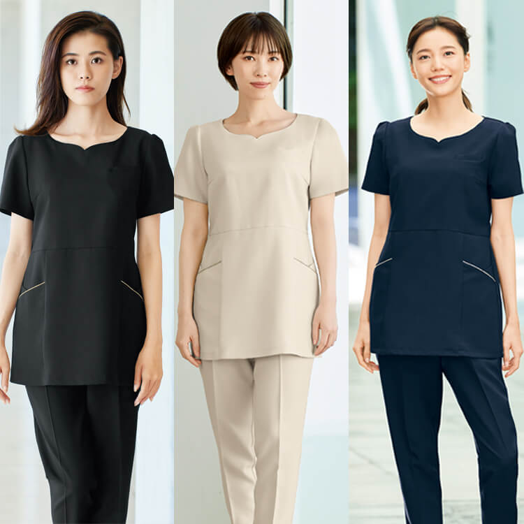 エステ制服チュニック、制菌や透け防止、素材も多数ご紹介