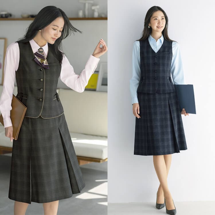 事務服ベストチェック柄 オフィスユニフォーム 特徴