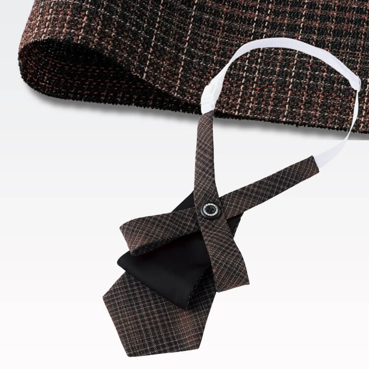 事務服ユニフォームと共生地を使用したクラシカルな柄が落ち着いた雰囲気とデザインの可愛らしいさが特徴の事務服リボン。
