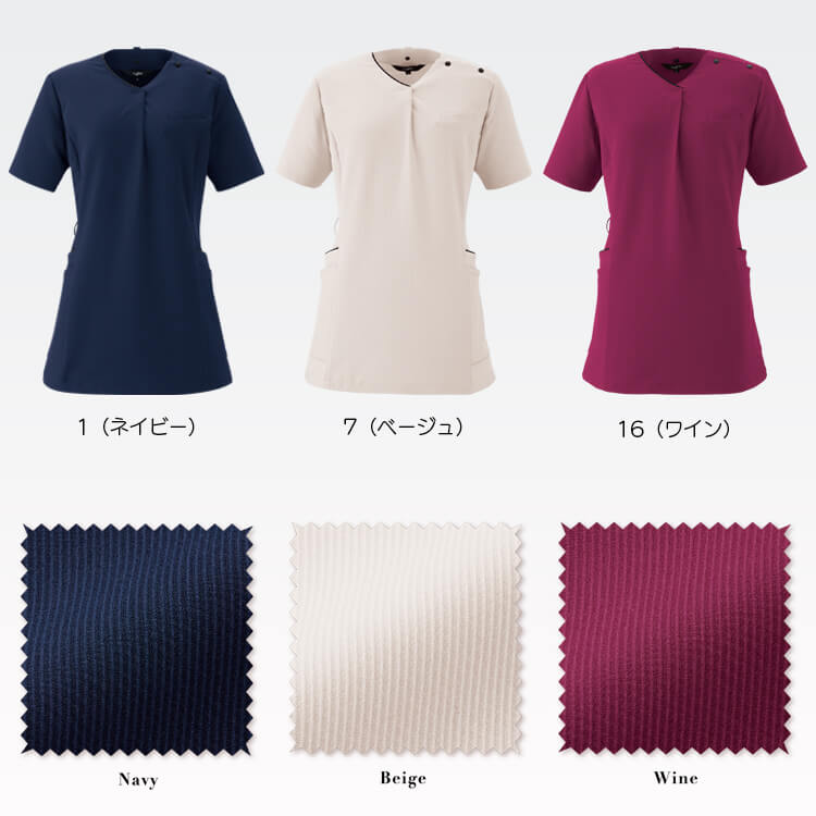 凛とした美しさが光る上質でシンプルな佇まいのクリニック白衣スクラブ。凹凸感のある無地ストライプ組織で、耐久性に加えてストレッチ性もあり、動きやすい美容・医療現場に合わせたユニフォーム素材。 医療現場で働く人々に上品さと快適さを考慮したワンランク上のおしゃれ医療ユニフォームです。