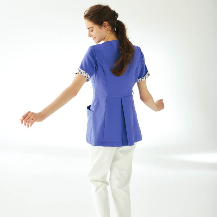 ネックラインが上品な印象のローラ アシュレイ医療スクラブ白衣。さりげない花柄使いで印象度もアップします。 またバックプリーツデザインで後ろ姿も美しく見せ、着心地や仕立て映えにこだわったローラ アシュレイのクリニックにおすすめ医療ユニフォームです。