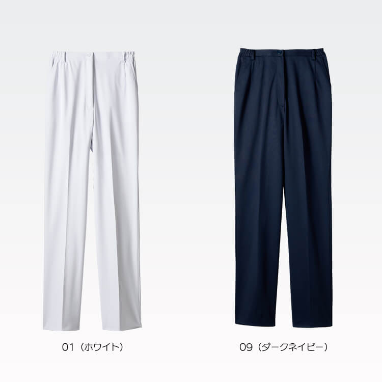 汚れがつきにくく、汚れがついて も落ちやすい加工を施した医療 白衣レディースズボン。