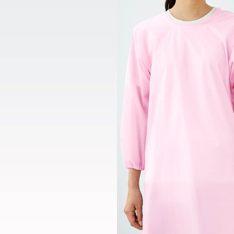 撥水エプロンで、入浴介助をよりスムーズに行える予防衣エプロン。 軽量で疲れにくく、しっかり腕までカバーする長袖タイプのレディース予防衣です。