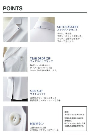 裾のサイドスリットが動きやすさをサポートし、ストレッチ素材がストレスフリーな着心地を実現します。さらに、ミニマルなステッチアクセントが洗練された印象を与えます。医療従事者の方々にも選ばれる高機能診察着です。しっかりとした作りで長くご愛用いただけます。