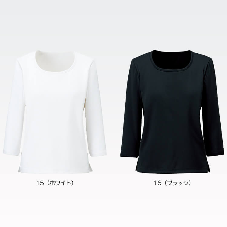 ラウンドネック仕様のシンプルで機能満載のオフィスカットソー制服。 1枚で着ていても透けにくく、ナノファイン加工による制菌加工がニオイの元を断ち、快適な環境をつくり出す事務服七分袖カットソーになります。