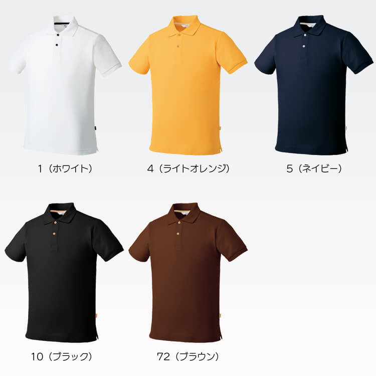 定番色からポップなライトオレンジ色を取り揃えた5色展開ベーシックデザインの男女兼用半袖ポロシャツユニフォーム。
