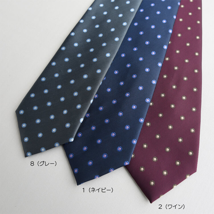 元気ある躍動的なドット柄で、2色構成の柔らかいイメージを与えてくれる高級感漂うシックなイメージに仕上た店舗・飲食店ネクタイ。あらゆる年代で身に着けやすくなっています。