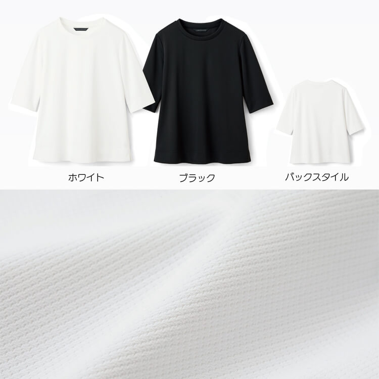 透け防止機能の素材を使用し、 アウターなしの1枚でも着用 できるカットソー事務服。