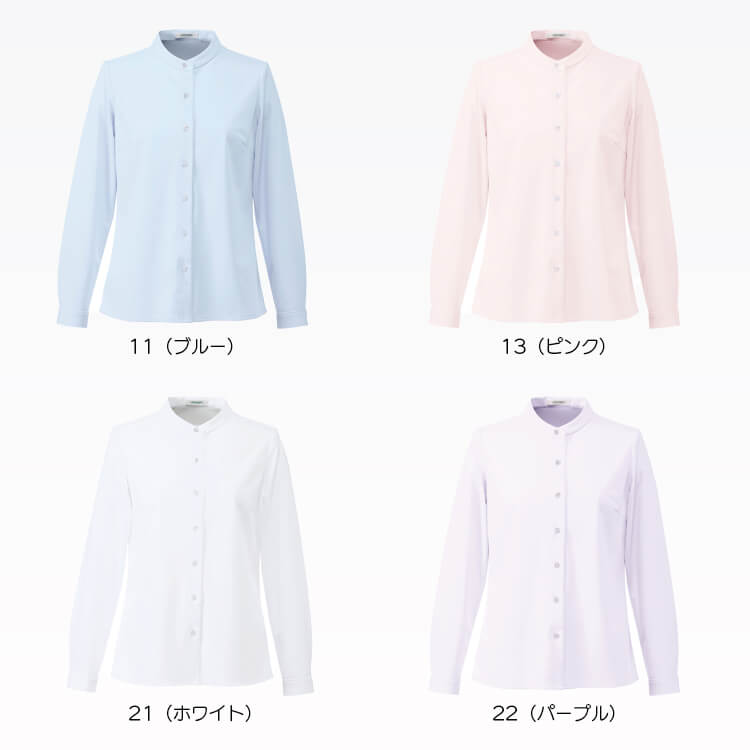 事務服長袖ブラウス 衿スタンド ニットストレッチ カラー・詳細