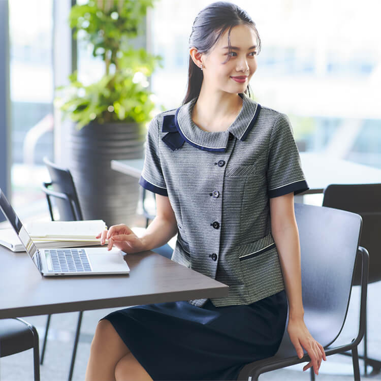 真夏の暑い日でも涼やかに過ごせるよう工夫された夏のオフィスユニフォームです。汗をかいてもサッと乾く素材で清潔さもキープします。オフィスでの長時間の着用でもストレスを感じることなく、快適に過ごせます。この夏、新しい事務服で気分もリフレッシュしませんか。