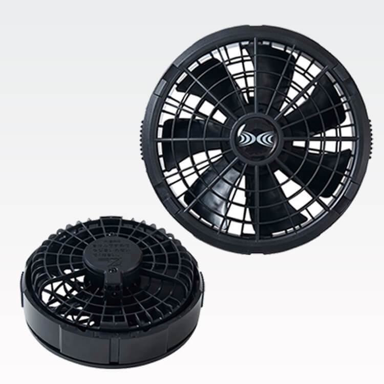 ファン位置は真横に配置されているので、風が直接身体全体に届き、効果的に体温調節が可能です。カラーはディープネイビー、シルバーグレー、ストーンブラックの3色展開で、お好みやシーンに合わせて選ぶことができます。夏の建設業や設備工事作業着としてだけでなく、アウトドアやスポーツ観戦など幅広い場面で活躍間違いなし!