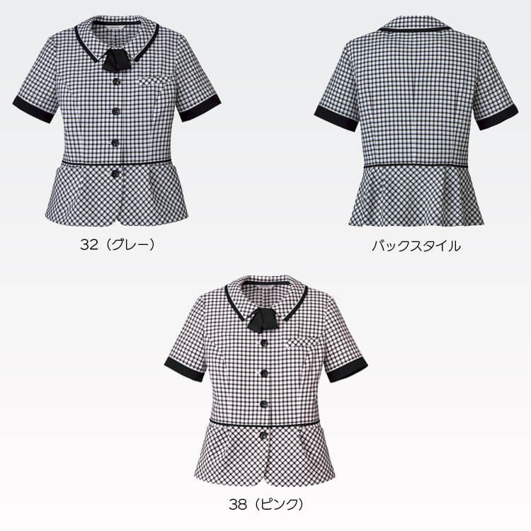 事務服オーバーブラウス チェック柄・会社制服 夏用 オフィスユニフォーム 夏用・店舗制服オーバーブラウス