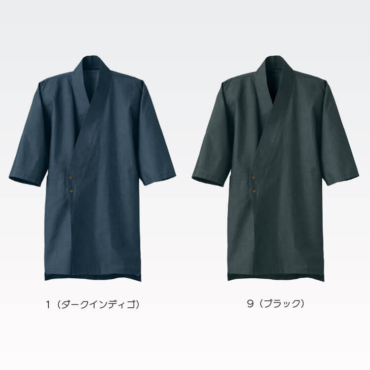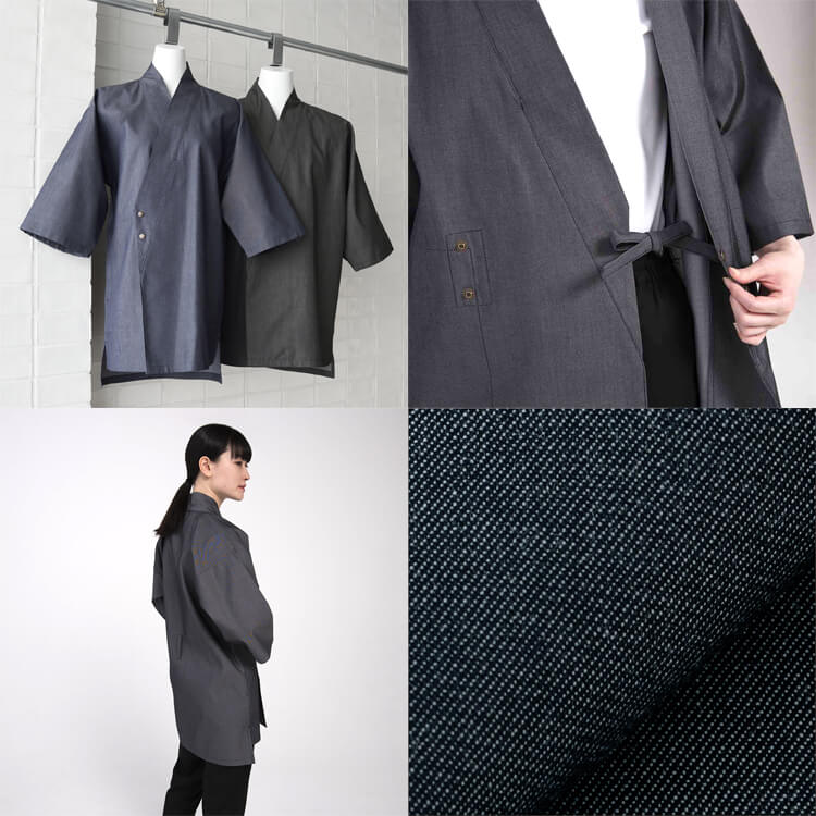 【作務衣】甚平・男女兼用「デニム素材」 SS~3L インディゴ ブラック 和風制服 / 和食ユニフォーム 特徴