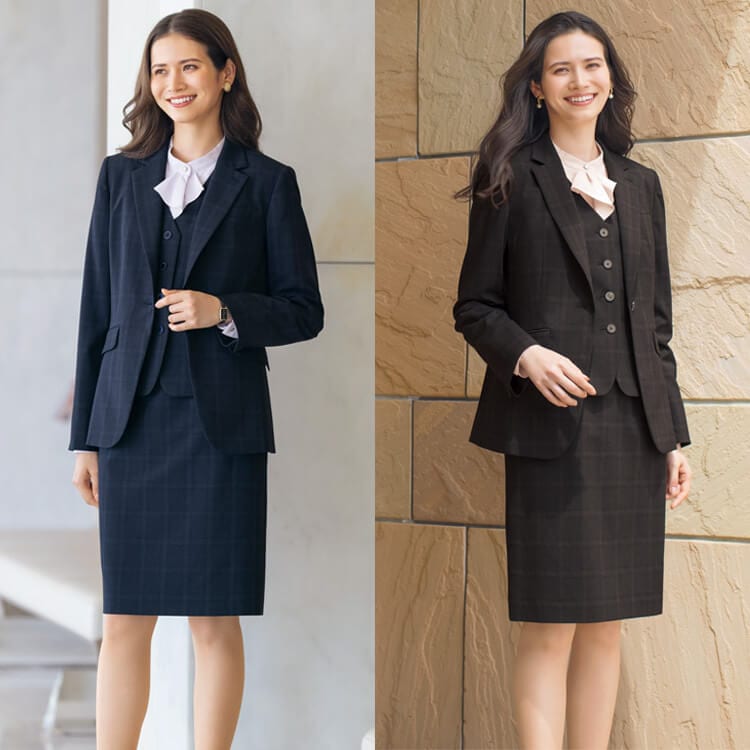 ウィンドペン柄の事務服タイトスカートは、オフィススタイルに上品さと洗練された印象を与えてくれるアイテムです。特にストレッチ素材を採用したスカートは、動きに合わせてしなやかに伸縮し、一日中座りっぱなしのオフィスワークでも窮屈さを感じさせません。また軽やかな着心地は、活動的なオフィスワークをサポートし、ストレスフリーな一日を約束します。
