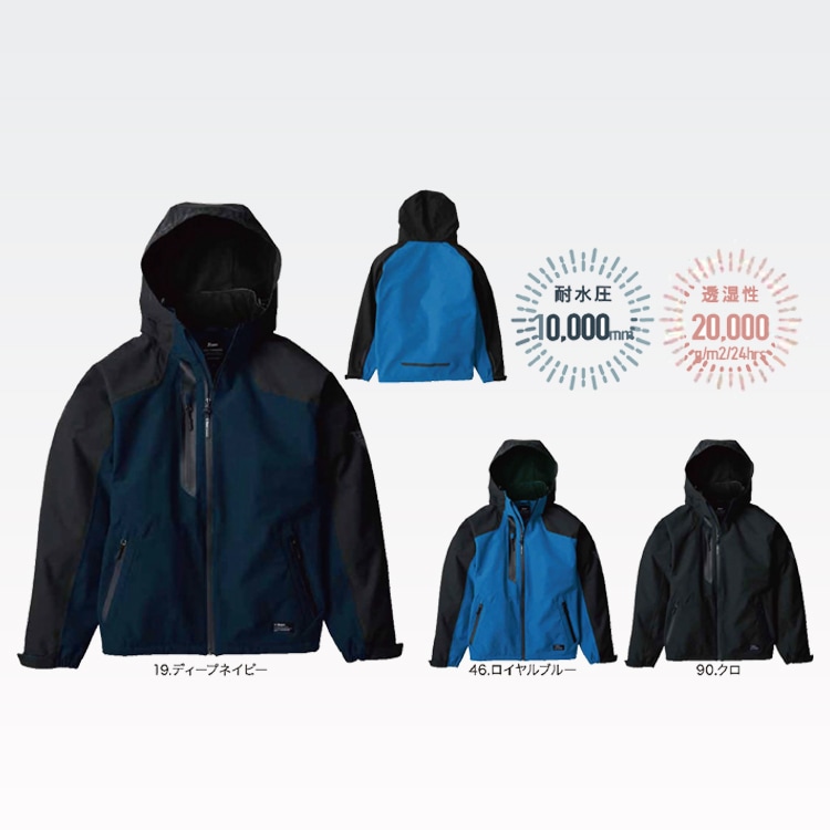 耐水圧 10,000㎜H₂O 透湿度 20,000g/㎡/24hrs ムレにくく、しっかり雨を 弾く、防水防寒ブルゾン。