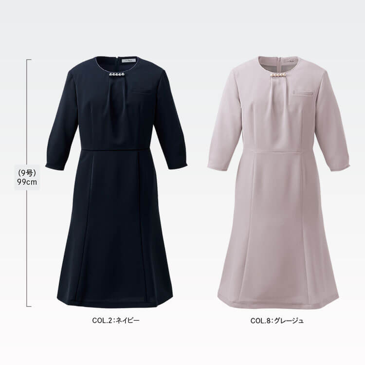 事務服ワンピース 「パールアクセサリー付き」ストレッチ・防汚 企業受付/ホテル制服 カラー・詳細