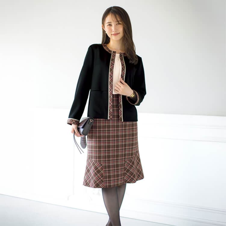 マーメイドスカート事務服・チェック柄・会社制服SELERY セロリー オフィスユニフォーム・受付制服スカート・ホテル制服
