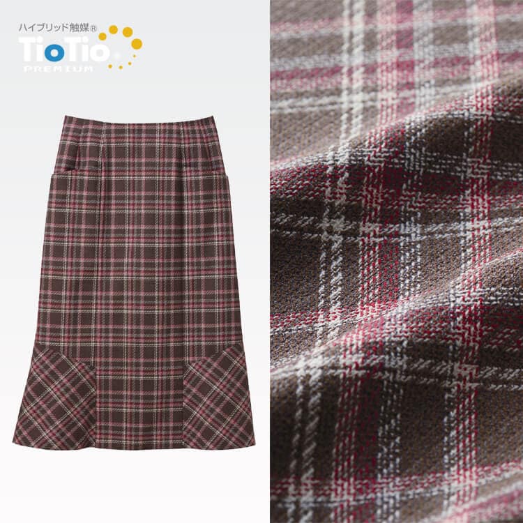 いつでも気持ちよく、清潔加工で 快適に着用できる事務服素材。 ハイブリット触媒® TioTio®プレミアム加工を 施したマーメイドスカート事務服。