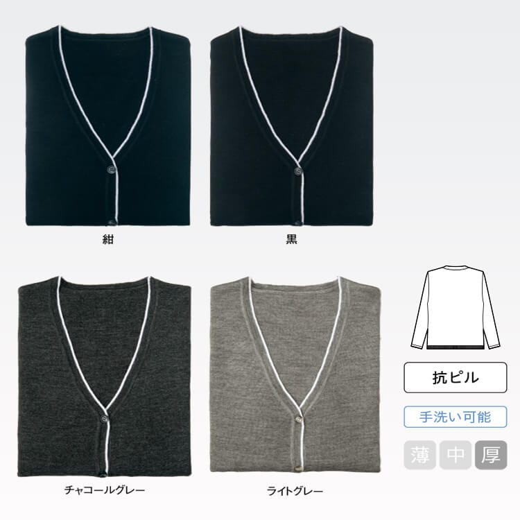 事務服カーディガン「毛玉防止」抗ピル加工・手洗い可 / 会社制服 カラー・生地