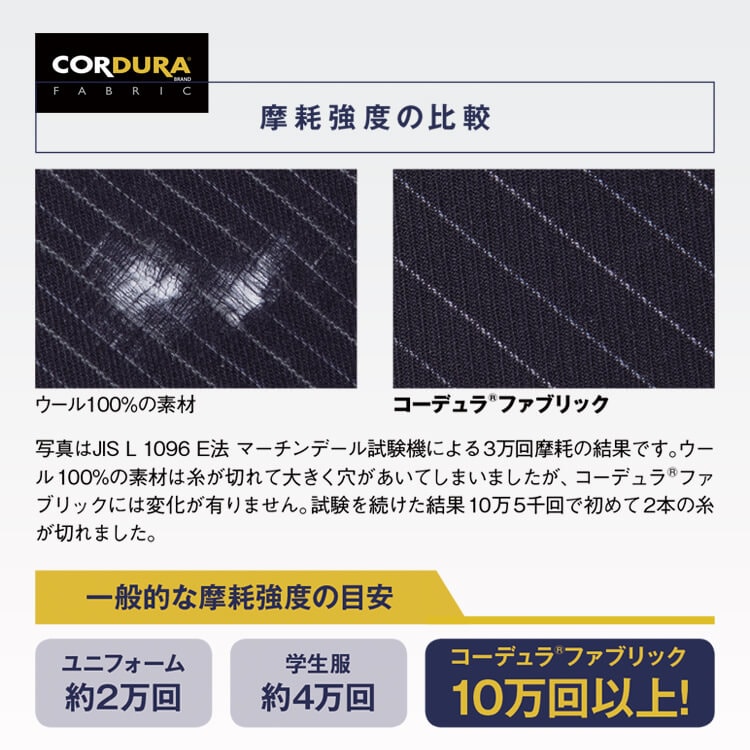「摩耗」「引き裂き」「擦り切れ」 などに対する高い強度を実現した 耐久性のある接客業にもおすすめベスト制服。
