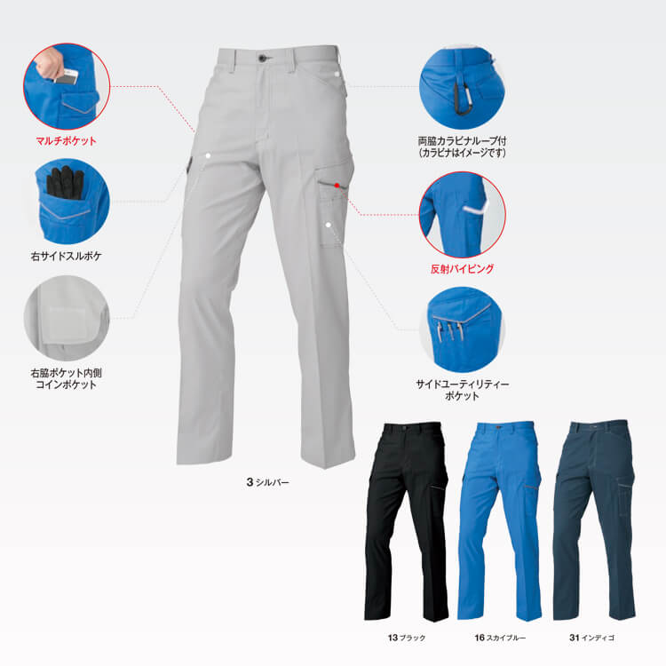 さらに、この作業パンツには消臭加工が施されており、長時間の作業でも嫌な臭いを気にせずに過ごせます。また、JIS制電適合なので、静電気を抑える機能も備えており、安全性にも優れています。